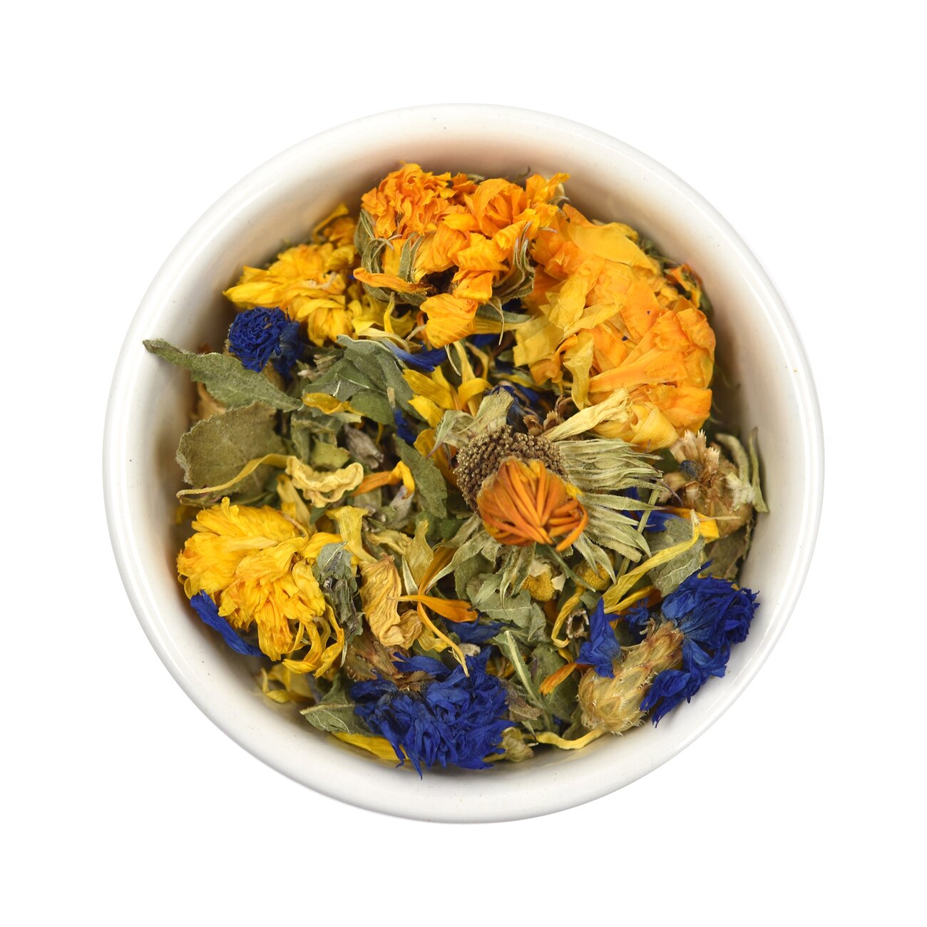 Jemná směs z křehkých kvítků a bylin plných síly má líbeznou chuť. V létě doporučujeme jako vychlazený nápoj na uhašení žízně, když si tuto směs namícháte v poměru 1:1 s ovocnou šťávou.