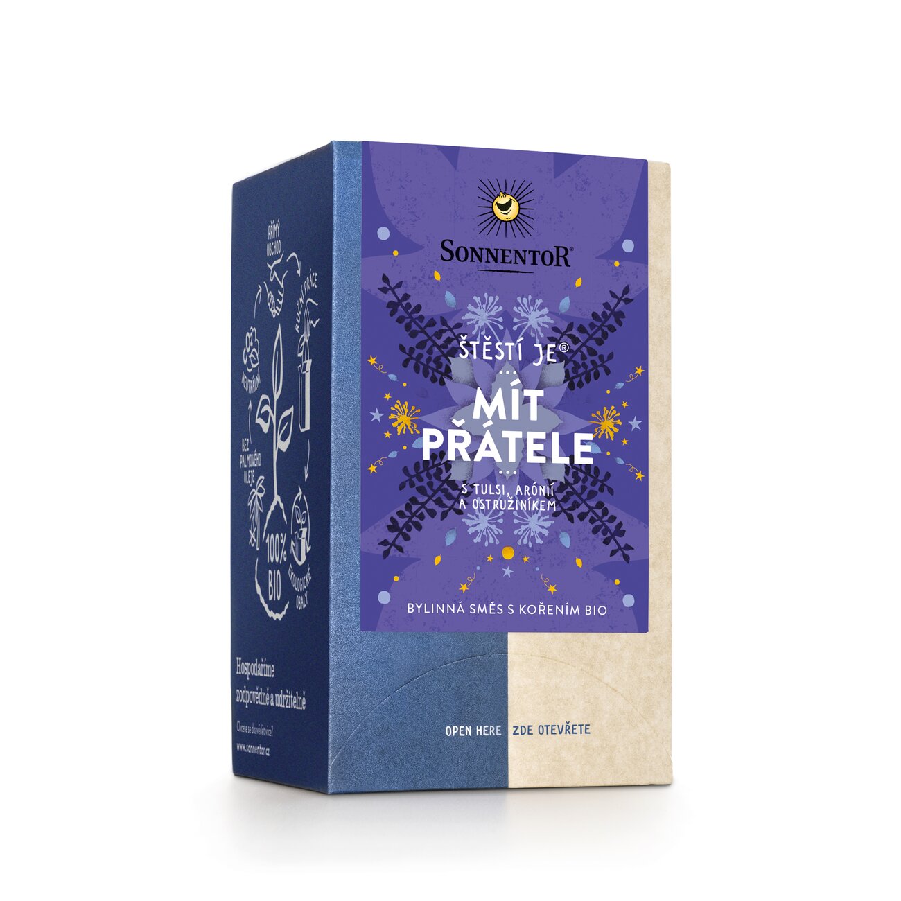 Výjimečná směs pro výjimečné lidi. Čaj s tulsi neboli bazalkou posvátnou, arónií a nasládlým listem ostružiníku perfektně ladí se svačinkami, koláči a ovocnými dezerty. Skvělý nápoj pro příjemné chvíle s přáteli. Štěstí je... mít někoho, s kým se zasmějete a nemusíte před ním skrývat pláč. Dobrý přítel je k nezaplacení!