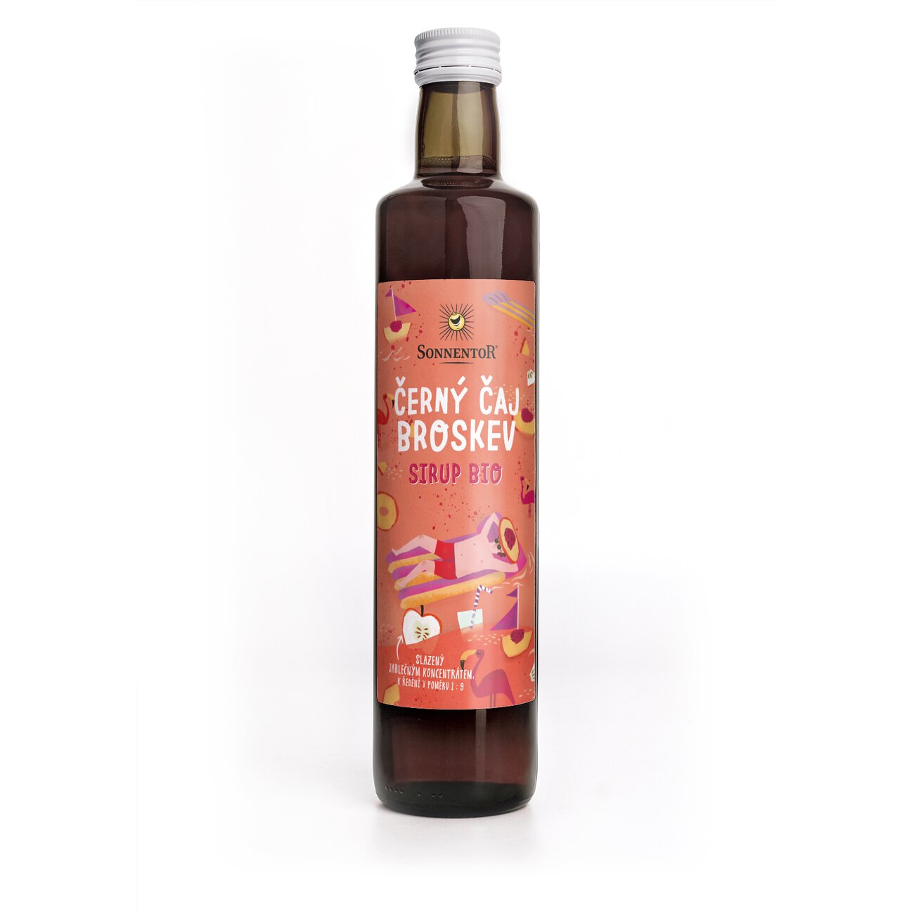 jablečný koncentrát bio 80 %,broskvový koncentrát bio 15 %, extrakt z černého čaje bio 5 %