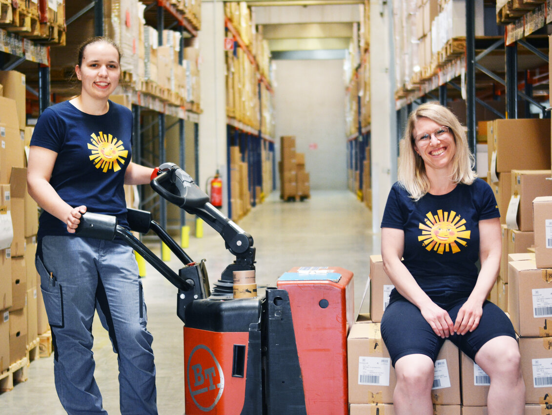 Seit einigen Jahren bieten wir auch die Lehre als Betriebslogistiker:in an. „Es ist so abwechslungsreich und noch viel besser als erwartet und ich kann jeden Tag so viel Neues lernen", freut sich Lehrmädchen Sabine.