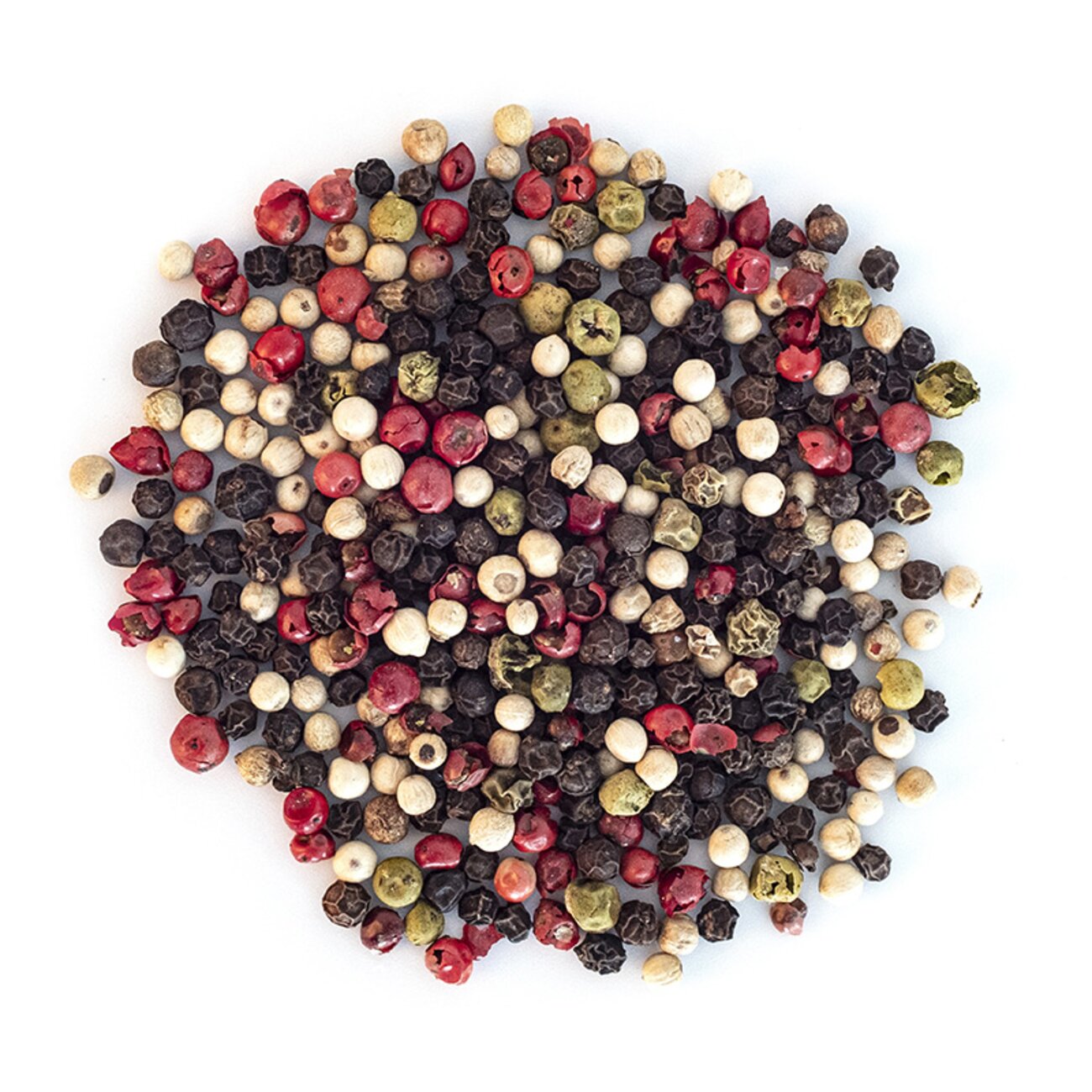 Die Mischung aus schwarzem, grünem, weißem und rosa Pfeffer ist der bunte Hund unter den Pfeffersorten. So vielfältig wie seine Farben, sind auch seine Einsatzmöglichkeiten. Ob Gemüsegerichte, Fleisch, Pasta oder Fisch – sie alle treiben’s gerne bunt! Und auch Gewürzmühlen schmücken sich gerne mit buntem Pfeffer.