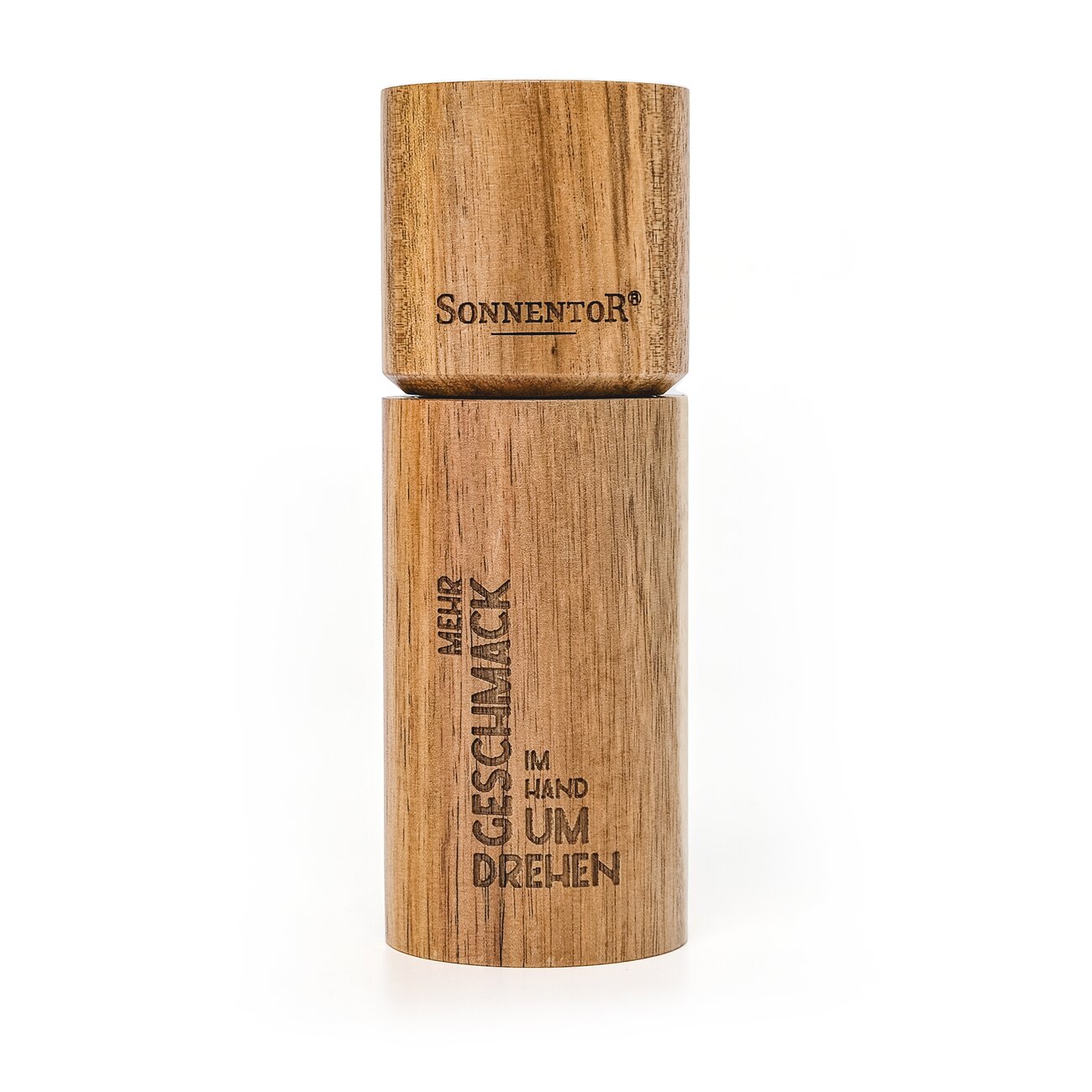 Salz- oder Pfeffermühle mit Logo und Spruch