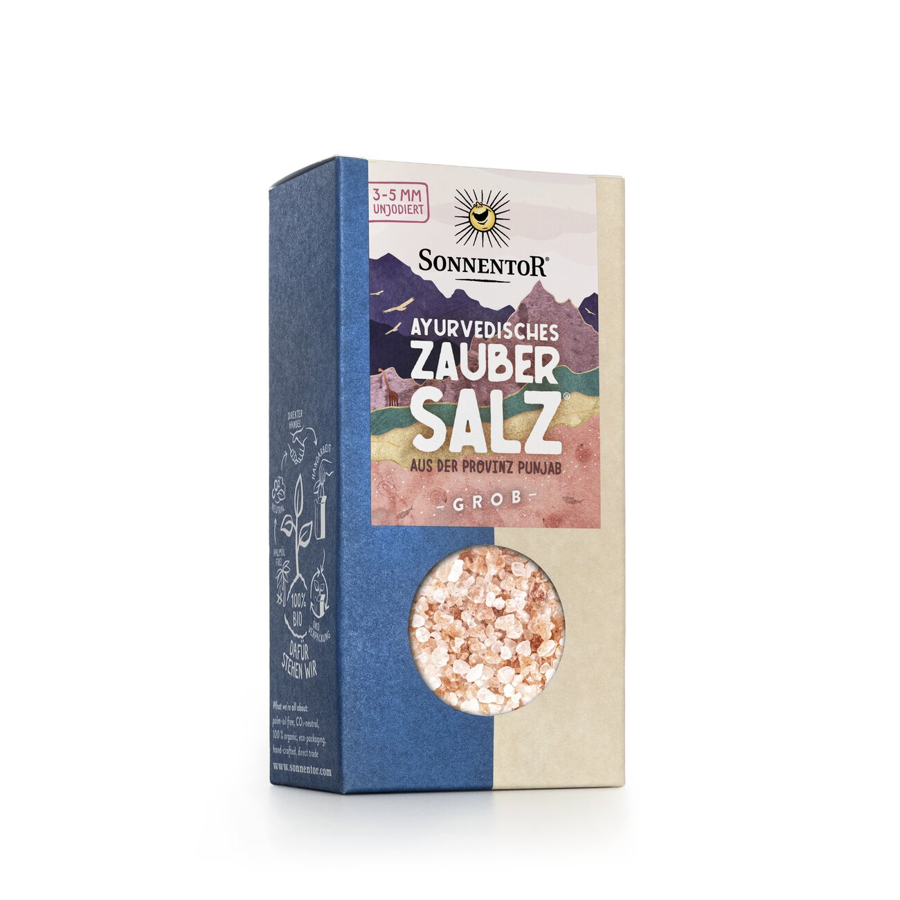 Dieses extra grobe Kristallsalz schmeckt besonders fein. Das rosa Gold wird nach alter Tradition in Punjab in Pakistan abgebaut. Dort ist es vor unglaublichen 30 Millionen Jahren durch die Austrocknung des Urmeeres entstanden. Die besondere Farbe ist keine Zauberei, sondern kommt von natürlich enthaltenen Mineralstoffen. In der Salzmühle und als Finisher-Salz wird es zum zauberhaften Blickfang am Tisch.