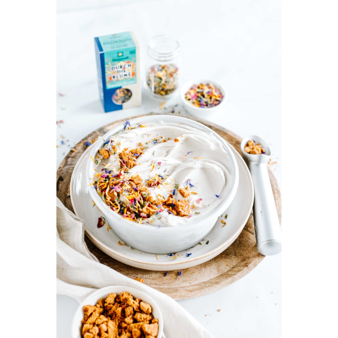 Du willst deine Liebsten oder dich selbst kulinarisch verwöhnen? Dann sag‘s durch die Blume. Desserts, Eis und Müsli werden zum Hingucker, wenn du sie mit dieser farbenfrohen Blütenmischung dekorierst. Für dich soll‘s bunte Blüten regnen!