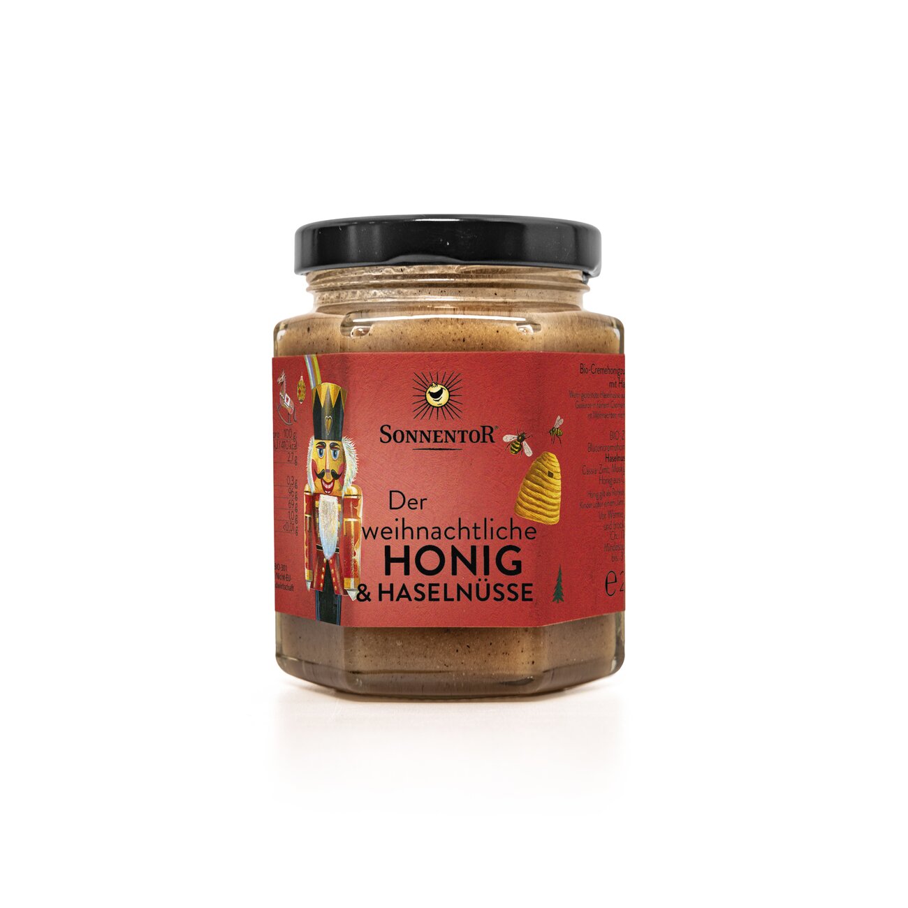Der Weihnachtliche - Honig und Haselnuss Wenn geröstete Haselnüsse auf winterliche Gewürze in feinem Cremehonig treffen, ist Weihnachten nicht mehr weit! Der weihnachtliche Honig mit Haselnüssen zergeht auf der Zunge und lässt den Gaumen frohlocken.