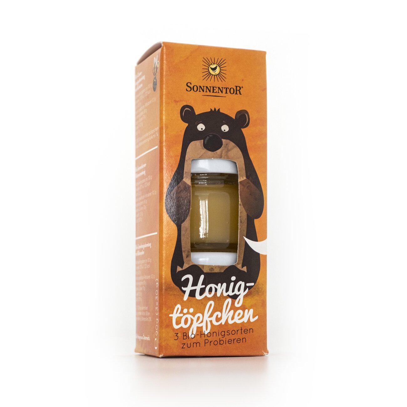 Drei tolle SONNENTOR Bio-Honigsorten zu einem netten Ensemble vereint. Möchten Sie gerne verschiedene Sorten Probieren oder suchen Sie ein nettes Geschenk? Dann ist der Honigbär mit seinen Töpfchen genau das Richtige.
