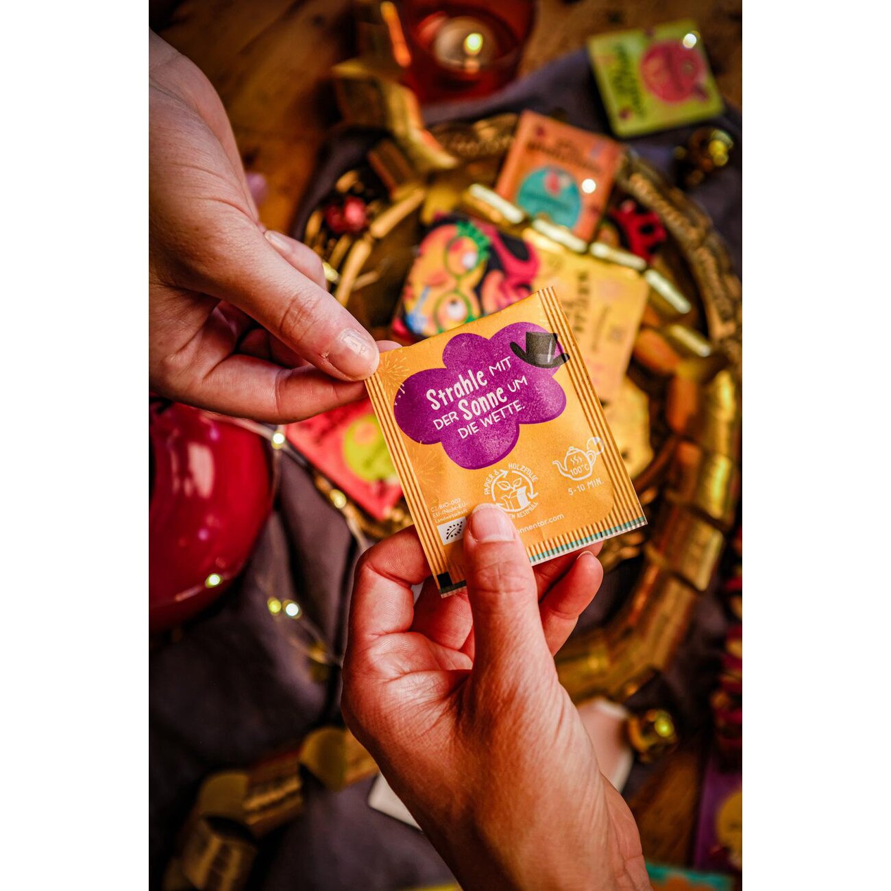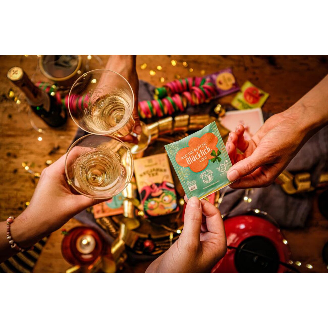 Genug von Plastik-Schweinchen, Rauchfangkehrer und Co? Mit diesem nachhaltigen Glücksbringer wird Silvester eine Punktlandung! Inspirierende Sprüche, lustige Motive und ein Feuerwerk an Kräutern und Blüten in jedem Teebeutelchen lassen dich und deine Liebsten restlos glücklich ins neue Jahr rutschen. Gluck, gluck, Glück!