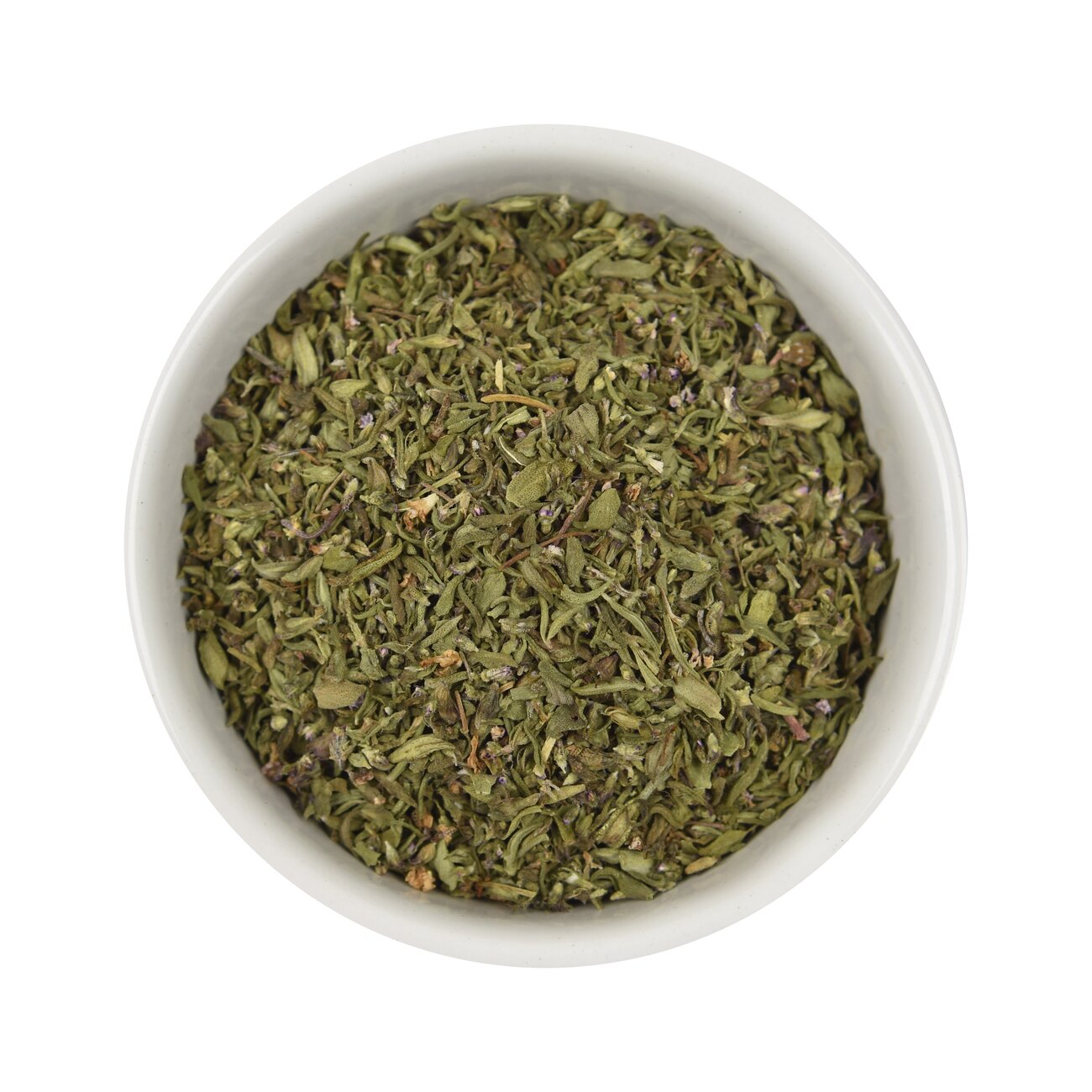 Der Frosch im Hals sucht schnell das Weite, wenn du ihm mit Thymian zu Leibe rückst. Im Geschmack ist der Tee kräftig und vollmundig mediterran. Thymian wurde früher von Kriegern vor gefährlichen Schlachten genutzt: Ein Bad darin sollte ihnen zu besonderem Mut verhelfen. Heute ist die Pflanze als Bienen- und Augenweide bekannt und sollte deswegen in keinem Garten fehlen. Thymus bedeutet übrigens Lebensenergie.