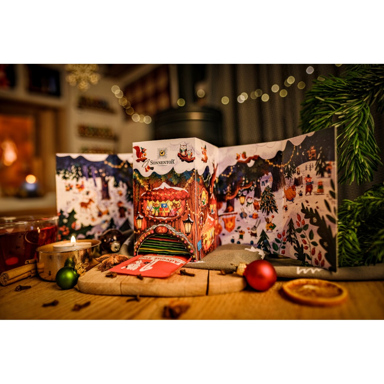 Oh du genussvolle Wartezeit! Tag für Tag hält dieser Adventkalender eine neue Tee-Überraschung für dich bereit. Außerdem bringen dir zahlreiche digitale Erlebnisse Weihnachten täglich etwas näher. Sammle mit Geschick Teezutaten in deiner virtuellen Tasse oder verwandle dich selbst in den Nikolaus. Dank neuer Faltung ist der Adventkalender aufgeklappt nun größer und bereichert mit seiner liebevollen weihnachtlichen Gestaltung deine Umgebung als festlicher Blickfang.