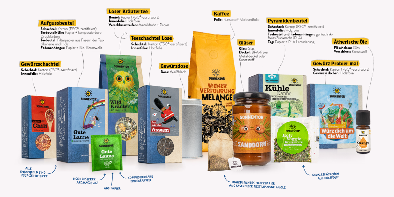 Für uns ist klar: Es geht auch anders. Bereits 2008 haben wir die Umstellung von konventionellen auf nachhaltige Materialien eingeleitet. Dazu zählen Folien aus Holzfaser, Teebeutel aus Bananenfaser, Papier und Karton. Was nicht kompostiert wird – wie zum Beispiel Glas und Metall, kann wiederverwertet werden. In Summe können bereits 93% unserer Verpackungen einem Rohstoffkreislauf zurückgeführt werden.