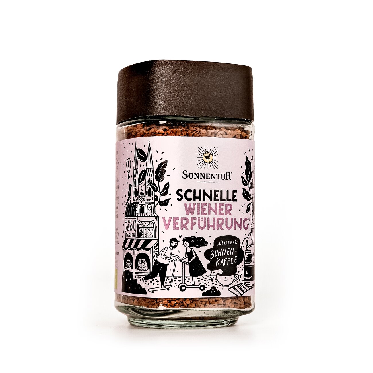Freeze-dried, soluble real coffee. 100% Arabica beans org.