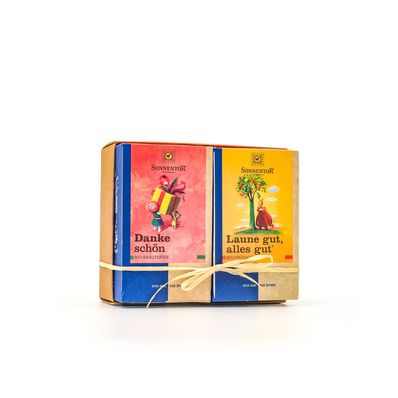 Content: Thank you Herbal Tea org. 27 g, double chamber bag, Cheery Fruit Tea org. 45 g, double chamber bag. You can find the ingredients, nutrition information and allergens of each kind at the equal product.