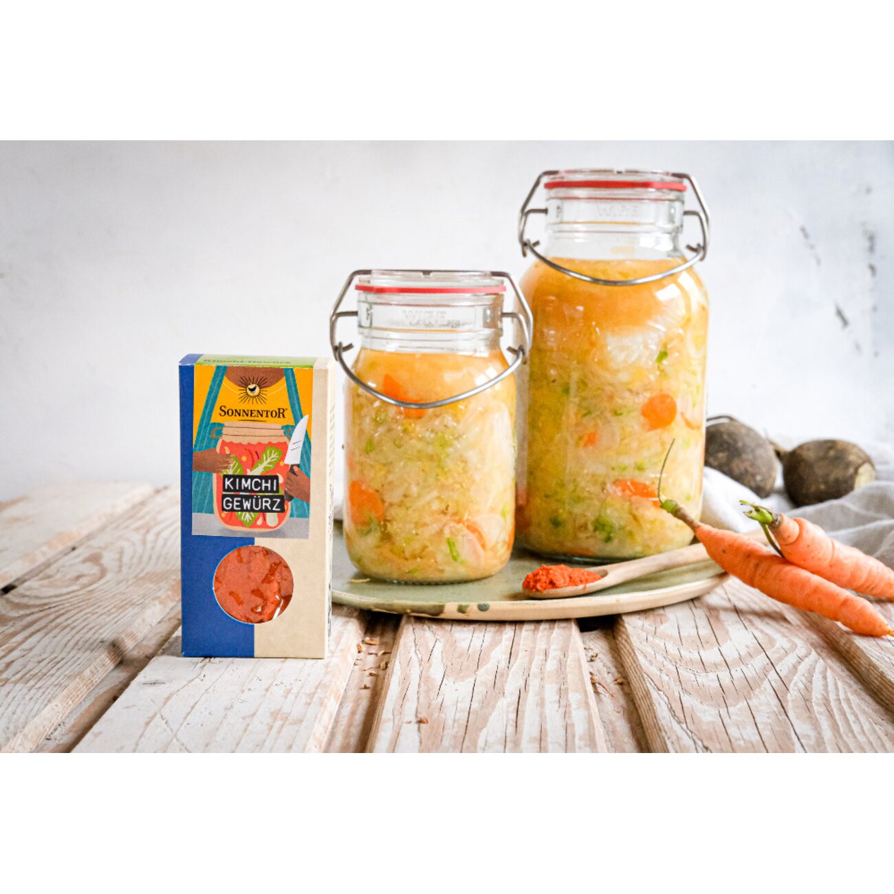 In a pickle? Hopefully we are talking about kimchi! You have every reason to be happy with this spice mixture because it opens up countless possibilities for you. You can use this ancient preservation technique to make Kimchi, a hot and sour Korean classic with Chinese cabbage and radish or come up with your own creative recipes. Fermenting is hip!